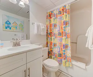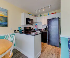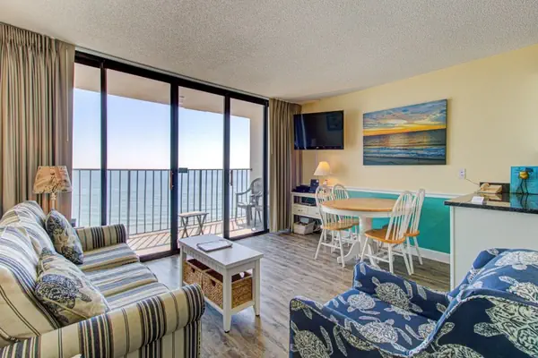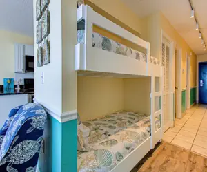 Located on the 10th floor of a beachfront building with sweeping ocean views, this ocean‑front one‑bedroom, one‑bathroom condo is designed for up to six guests looking for comfort, style and ease. The master bedroom features a plush king‑size bed, offering a restful retreat above the shoreline. Just off the hallway, you’ll find a built‑in bunk‑bed alcove—ideal for kids, teens or extra guests who want their own little space. The living room includes a sleeper sofa, providing an additional two sleeping spots without sacrificing the feel of the living area.