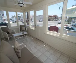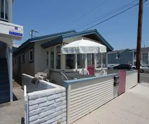 This quaint 2 bedroom, 2 bath beach bungalow is located just 9 houses from sand. It has a large sun porch and outdoor patio with a BBQ. A spacious living and dining area. Bedrooms are compact but cozy, as the home was built to serve as a beach house getaway back in the day. The first bedroom has a queen bed, the second has two twins. There are two full bathrooms, one with a walk-in shower and the other with a tub-shower combination. There is 1 parking spot on the street behind the home