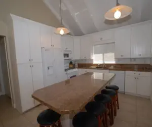 The living area opens to the well thought out kitchen, where you can cook up meals for the whole crew. A granite island with seating for 6 is an ideal spot for quick breakfasts and casual dinners.