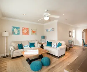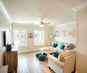 The master bedroom has a queen bed, wall mounted flat panel TV, walk-in closet and en suite bath with shower. Kids will love the nautically-themed second bedroom with twin over double bunk and a full-size trundle. The nearby hall bath has a tub/shower combination. The home has a terrific rooftop deck for soaking up the sun or enjoying family meals and sharing the days experiences.