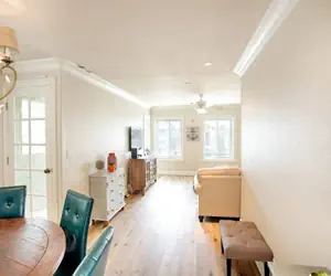 The shared garage has room for 2 cars. The shared full-size washer and dryer is located in the garage as well.