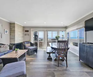 This beautiful 2 bedroom, 3 bathroom, 2 story oceanfront home located on the boardwalk is a remarkable hideaway with a king-size bed, en-suite bath with a walk-in shower and a private balcony featuring seating for two and panoramic ocean and Catalina Island views. The second bedroom is a second suite, with queen-size bed, sleeper sofa, and en suite bath with walk-in shower. Just 3 blocks from the Newport Pier. 1 parking spot in garage.