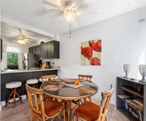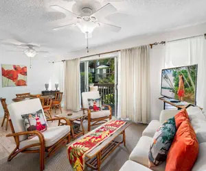 Laundry Level on Main Level as carport, with your own private use of a washer/dryer that belongs to the unit. Walk up the 1st flight of Stairs to the Main Living Area. There is a Comfortable Pull out sofa for 2 people in this space, with Private Lanai Access.