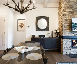 After a day of skiing, warm up in the garage before ascending to a haven of luxury. The open floor plan allows for easy conversations while enjoying meals prepared with top-notch Wolf and Subzero appliances.