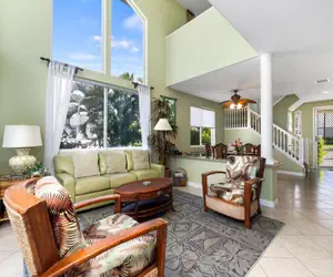 Largest Floor Plan in Kona Sea Ridge. Living Area, Main Lanai, Kitchen, Bedroom & Bathroom on Main Level. Upstairs has the other 2 bedrooms, 2 bathrooms & Loft Living Space. 2 assigned parking spaces right in front of the unit!