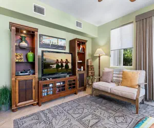 The Living Room is very spacious. Large Flat Screen TV with Cable Access. Wireless High Speed Internet available