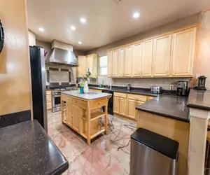 Experience the perfect blend of comfort and style in this well-appointed house. The spacious living area, adorned with plush furnishings, provides an inviting space to unwind after a day of adventure. Whether you're indulging in movie nights on the large flat-screen TV or finding solace in the cozy reading nook, every moment promises relaxation. Bring your own Firestick or Roku if you’d like to use all of your apps.★☆ KITCHEN & DINING ☆★