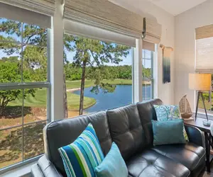 DETAILS: Delightful 3-bedroom villa on the 3rd floor with a fantastic view of the 4th hole located on the manicured True Blue Golf Course and free wifi. Beautifully decorated Villa with plenty of room for everyone inside and out. Prepare a meal in the fully equipped kitchen or barbeque on the charcoal grill and then relax on the screened-in porch and take in the view. Nap in one of the spacious bedrooms or enjoy a movie on the flat screen. Full-size washer and dryer inside the condo for your convenience. This home is a pet-friendly property. We do charge a pet fee of $150 so please notify the rental office if you are bringing a pet.