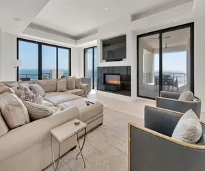 A gourmet kitchen with Wolf range and ovens, extra refrigeration and ice makers, expansive open porches with dining and sunning opportunities, observation deck the primary suites have air-jetted tubs. There is an elevator, 2 gas fireplaces, wet bars with ice makers, washer dryer, high-speed wireless internet access and luxury linen and towels.