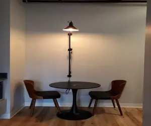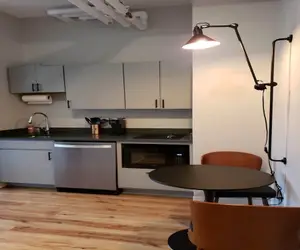 This rustic queen-sized apartment is as neat as they come! Classic design elements like wrought iron, wood grain, and Edison bulbs invoke vintage sophistication, while amenities like the equipped kitchenette, full bathroom, and comfortable bedding have you taken care of no matter where your explorations take you. This studio is pet friendly, a doggy bed and bowl can be made available upon request. As much as we love cats, we do not allow cats or other animals aside from dogs at our property. The Factory is pleased to be able to welcome visitors from all around the world! Make yourself at home in one of our beautifully restored studio apartments, featuring original furnishings paired with modern amenities, as you explore everything that the Greater Manchester area has to offer.Your beautiful unit is fully furnished and prepared for your arrival, featuring a high-performance mattress and bedding, bath towels, and a full kitchenette with all the essentials. To ensure your safety and comfort, each unit is equipped with a smart lock and thermostat, allowing you to control your space with just a tap on your phone.In addition to the in-unit amenities, you’ll also enjoy full access to our smart fitness center, smart laundry room, high-speed internet, and smart televisions. Throughout the building, you’ll see local and visiting artists' work. We also host artists every 3 months through our Artist in Residency program.Interested in hosting a sales kick-off or wedding? There is a beautiful event space right on site and you can inquire about booking all 16 of our Airbnbs.Visiting an employer, writing a book, or performing at a local theatre? We welcome long-term stays.