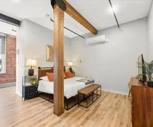 Kick off your boots and take a load off in this urban desert-inspired king-sized apartment. Natural leather, wrought iron, and cozy Southwestern-style textiles make for a warm and upbeat vibe, while amenities like the equipped kitchenette, full bathroom, and comfortable bedding keep you relaxed and rested between your adventures.