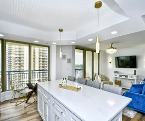 All three bedrooms are thoughtfully decorated to reflect relaxed beach luxury, and all TVs—including the great‑room TV—are smart TVs for easy streaming.