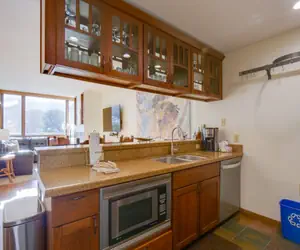 Step into the fully equipped kitchen, where you'll find modern appliances and everything you need to prepare delicious meals during your stay. After a day of outdoor activities, gather around the gas-burning fireplace in the spacious living room, creating a warm and inviting atmosphere for relaxation. Step outside onto the ground-level patio or balcony to take in the stunning mountain views, offering a picturesque backdrop for your mountain retreat.