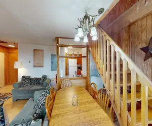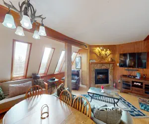 This Leatherbark Standard 4 Bedroom sleeps 10 people. This unit has a full kitchen, living area with a sleeper sofa, 4 bedrooms, 2 bathrooms, electric fireplace and washer/dryer. At Leatherbark you will be a moderate walk to the slopes and village or you can take the shuttle bus to other areas on the mountain. APPROXIMATE DISTANCE TO SLOPES: 350 yards.
