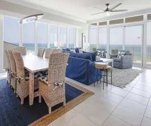 Phoenix Gulf Towers 408 is a spacious four-bedroom, three-bath Gulf-front condo in Orange Beach, Alabama, designed to accommodate up to 16 guests. The master bedroom features a king bed, while the second, third, and fourth bedrooms each have two queen beds. Additionally, there is a sofa sleeper in the living room for extra guests.