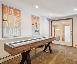 As your stay comes to a close, we hope you leave with hearts full of cherished memories and a renewed sense of peace. Our lakeside haven was thoughtfully designed to offer something special for everyone—whether through quiet moments of reflection or exciting days on the water. We hope our home provided the perfect setting for a truly unforgettable getaway. Thank you for choosing our little slice of heaven. We can’t wait to welcome you back, where the lake will be waiting with more adventures and tranquil moments.PLEASE NOTE: The Sauna is open year-round | Hot Tub is shut down for the winter months. It will be seasonally CLOSEDfrom 11/5/2025-4/9/2026.★☆ NEARBY ATTRACTIONS, LANDMARK & RESTAURANTS☆★☀ Minnesota State Fair - 13 min drive☀ Downtown St. Paul - 14 min drive☀ MSP International Airport - 21 min drive☀ Mall of America - 24 min drive☀ Downtown MPLS - 19 min drive☀ Super Target & Trader Joe’s - 6 min drive☀ Costco - 10 min drive☀ Rosedale Mall - 10 min drive☀ US Bank Stadium (Minnesota Vikings) - 16 min drive☀ University of Minnesota - 18 min drive☀ Xcel Energy Center (Minnesota Wild) - 13 min drive☀ Target Field (Minnesota Twins) - 18 min drive★☆ KEY FEATURES ☆★☀ Prime Location☀ Lakefront Home☀ New Barrel Sauna - Open Year-round☀ Hot Tub - *CLOSED 11/5/2025-4/9/2026, (weather dependent)☀ Amazing Views (lake and sunset)☀ 1-acre flat yard for volleyball, badminton, cornhole, bocce ball☀ Dedicated Workspace☀ Yard Games☀ Baby-friendly (high chair and pack-n-play)☀ Beach and Lake access + Boat Dock w/bench and ladder (seasonal, please inquire if available during your stay)☀ Kayaks & Paddle Boards☀ Step Free Entrance and single-level accommodation☀ Shuffleboard table☀ Pet-Friendly - small dogs only☀ Secure Garage Parking☀ Fishing and Ice Fishing (bring your own gear)☀ Fire Pit (seasonal)☀ Enclosed porch☀ S'more Kit and Roasting Sticks (seasonal, replaced with Hot Cocoa station during winter months)☀ Mini Cooler★☆ BEDROOM ARRANGEMENT☆★BR1: 1 King BedBR2: Queen BedBR3: Queen BedBR4: (Semi private room): 1 Single BedLower level: Queen size Murphy bed and a Full size pull-out couch★☆ LIVING ROOM ☆★Step into our welcoming home, where a cozy atmosphere awaits to embrace you from the moment you arrive. Relax into the plush seating of the spacious living area, basking in the abundant natural light streaming through expansive windows, which imbue the space with a sense of serenity and peace. At the heart of the room, a crackling fireplace invites you to unwind further, while a large screen TV offers the perfect opportunity for cozy movie nights or catching up on your favorite shows, completing the sanctuary-like ambiance.★☆ KITCHEN & DINING ☆★Embark on culinary escapades in our well-equipped kitchen, featuring modern appliances and abundant counter space ideal for crafting delectable dishes to share with family and friends. Enjoy meals indoors in the charming dining area, or savor them al fresco on the spacious deck, where captivating water views await to enhance your dining experience.★☆ PARKING ☆★☀ 2 garage parking spots☀ 2 behind garage spots-During the winter months, we require AWD and 4x4 vehicles for easy access in and out, especially during snowstorms.★☆ OUTDOOR SPACE ☆★Welcome to our spacious outdoor sanctuary, where you can relax and unwind surrounded by nature's beauty. Enjoy a variety of amenities, including private lake access, a cozy fire pit for making s’mores, and comfortable outdoor furniture (seasonally available). Whether you're lounging on the decks, dining al fresco, or simply soaking up the sun on the sun loungers, our outdoor space offers something for everyone to enjoy. Come and experience the tranquility of outdoor living at its finest!★☆ Book Now & Let Us Take Care Of You! ☆★Guest accessWhen you arrive, temporarily park behind the garage. To access the garage walk to your left (south) to the single entry door. Use your code to enter the door and garage. Walk to the garage door opener pad on the northwest corner of the garage. Open the garage door and then park your cars inside. Exit the Northwest door and walk along the deck (towards the lake) to the main house entry (side door facing north). Use your code to enter. Enjoy your stay!Other things to noteTo enhance your stay, we've equipped our space with Samsung smart TVs connected to Wi-Fi for your entertainment needs. To access your favorite streaming services and content, simply log in to your personal accounts. Please note that you may need to download the Samsung app for seamless connectivity. We look forward to hosting you and ensuring a delightful experience during your stay!Please note that you will be charged $50 for Trash and $100 per Hot Tub & Sauna if you do not follow the provided trash and hot tub & sauna instructions.