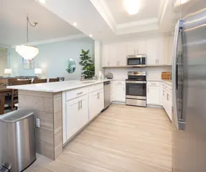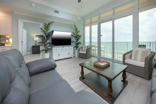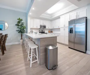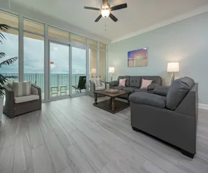 Phoenix Gulf Towers 1507 is a spacious three-bedroom, three-bath condo that accommodates up to 12 guests. The master bedroom features a king-sized bed and private access to a balcony. The second and third bedrooms each have two queen beds, while the living room offers a queen-size sofa sleeper. Flat-screen TVs are provided throughout the condo, and the kitchen is equipped with stainless steel appliances. The dining room seats eight, with four additional barstools at the breakfast bar. The master bathroom includes a double vanity, a walk-in shower, and a separate Jacuzzi tub, ensuring a luxurious stay.