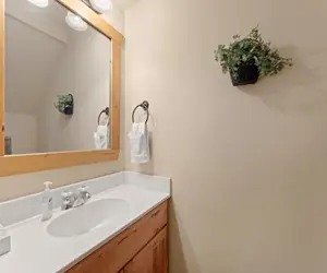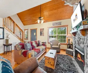 The cabin also features a half-bath in the living area, as well as a full bath with a jacuzzi tub and walk in shower in the bedroom upstairs. There is also a private deck, perfect for relaxing.