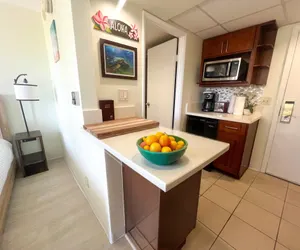 Enjoy sunny palm-tree views from this gorgeous hotel-style studio at the Palms at Waikiki Building. Nestled across the street from Ala Wai Boat Harbor, Hilton Hawaiian Village, Duke Kahanamoku Lagoon, Waikiki Beach, and so much more, our home is walking distance to endless shopping, dining and attractions.