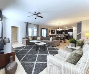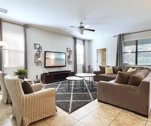 The Retreat at Champions Gate - Kissimmee, Florida is a new upscale gated resort community located just 12 miles from Walt Disney World. This luxury home sits nestled just outside of Orlando, Florida, and will quickly become one of the most desired locations in the Orlando area. During your stay, you will enjoy this well-appointed home that has been designed and decorated to provide you and your family with an abundance of luxury amenities and leaves you well-equipped to vacation with all the usual items you would expect to find at home. The Retreat at Champions Gate is only a 30-minute drive from the Orlando International Airport and is situated central to all of Orlando’s famous attractions. This spacious 7-bedroom holiday villa can comfortably accommodate a larger family or group of up to 17 people.