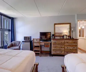 Look no further for a great slope-side hotel room location right next to the American Eagle chairlift! There are 2 Queen Beds and a full bathroom. There is a flat screen TV. Parking is available for 1 vehicle in the Lower Ten Mile Lot, just across the roundabout on Guller Road. Any additional vehicles can park in the Alpine lot at the entrance of Copper Mountain for an additional charge in the winter, summer is free. Mountain Plaza has a shared Outdoor hot tub. There is a private ski locker for use during your stay. Laundry facilities are available as well on both the third and fourth floors. There are many shops and restaurants nearby.