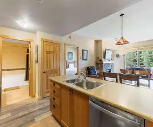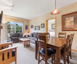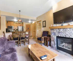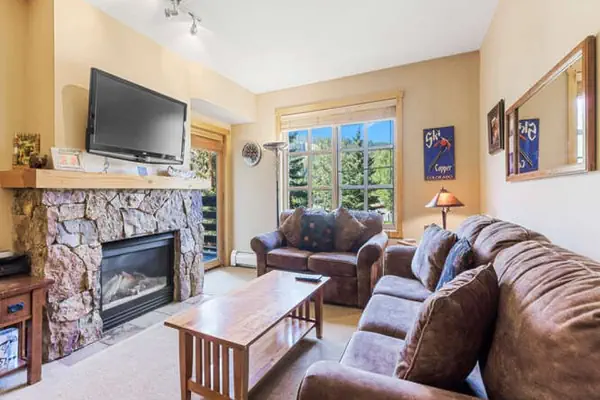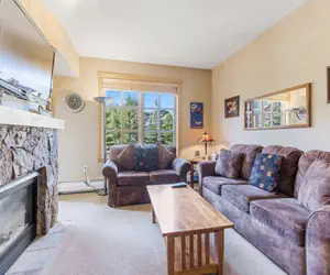 Located in the middle of Center Village, this beautiful 2nd floor condo sleeps up to 6 people. Passage Point is one of the most popular places to stay at Copper Mountain! Make yourself at home in the newly redecorated living room and enjoy the gas fireplace after a long day on the slopes. Catch the big game on the 32 inch flat screen TV, or watch a DVD. The well appointed kitchen is perfect for cooking all of your meals at home and has stainless steel appliances. Or, take a break from cooking and walk to one of the many restaurants nearby. The living room couch does have a Queen Sleeper Sofa.