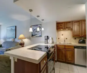 Get away from it all in this luxurious condo! Enjoy view of the West Lake the large living room windows. Condo sleeps up to 4 people and has 2 full bathrooms. Mountain Plaza is right next to the American Eagle chairlift in Center Village, can't beat this Center Village location! Quiet corner location in Mountain Plaza. The Living Room has a Queen Sleeper Sofa, a wood burning fireplace, and a flat screen TV. The newly remodeled kitchen is fully stocked with everything you need. This spacious kitchen has granite counter tops and stainless steel appliances. The dinning room table has seating for 4 and there are 4 addition seats at the breakfast bar. The bedroom has 1 King Bed and flat screen TV. There is an en suite bathroom. There is garage parking for 1 vehicle. Clearance is 6'7". An additional vehicle can park in the Lower Ten Mile Lot off Guller Road after the roundabout. Overflow vehicles can park in the North Alpine Lot at the entrance of Copper Mountain for an additional charge in the winter, summer is free. Mountain Plaza has a shared hot tub. There is a private ski locker for use during your stay. Laundry facilities are available as well on both the third and fourth floor. There are many shops and restaurants nearby.