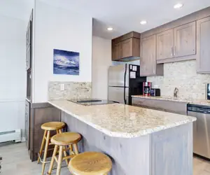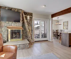• Additional features include a washer/dryer in the condo and a private deck with a BBQ and partial lake views. After a long day of adventure, nothing beats relaxing in front of the wood-burning fireplace. Enjoy the stunning views from the living room while sipping on a hot cup of cocoa. Prefer a hot tub? The nearby clubhouse has two hot tubs, a pool, a sauna, and more, and it has recently been remodeled.