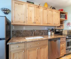 Escape to this cozy top-floor, one-bedroom condo in the heart of Telluride, perfect for a relaxing vacation in the mountains. Comfortably accommodating up to four guests, the condo features a set of bunk beds alongside the main bedroom, making it ideal for families or groups of friends.