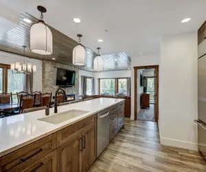 Bring the whole family and enjoy this fully renovated, stylish and spacious condo located at the historic Village at Breckenridge – the best located condo complex in Breck. The Village is nestled at the foot of Quicksilver chair lift and steps from Main Street making this the best of both worlds!Entering the unit, you’ll be greeted by a warm, yet utilitarian entry area complete with ample ski racks and a built-in boot and shoe rack - a convenient addition for longer trips. The fully equipped kitchen with high end appliances and finishes stands out as the heart of the unit. Whether you’re interested in slow mornings gathered at the kitchen bar or a three-course homemade meal, this kitchen will suit all the needs of your group. From the living room, enjoy your morning coffee looking out onto the panoramic mountain view, or utilize the abundant living room seating to enjoy family movie night.The master bedroom boasts ultra-luxe carpet and a separate patio entrance. Plus, the stylish master bath has fantastic lighting and a spacious walk-in shower. The main bathroom off of the living area will be perfect for the whole family’s comfort and use. The unique architectural shower even makes room for a spacious soaking tub! The second and third bedrooms have the same luxury carpet underfoot as well as multiple bunks for the kids, each of which feature a night light and charging station.After a long day of skiing or hiking, utilize the Village’s world class amenity offerings that include multiple renovated hot tubs, a heated pool, sauna and a fitness center. For the kids, rent the premium movie room for a night where you can stream movies from your favorite streaming services like Disney+ and Netflix, or watch the big game with everyone in your party. Don’t forget to check out the game room, too!Also conveniently located within the Village Plaza are ski and snowboard rentals, Breckenridge Ski School and restaurants and food trucks. Blending premium comfort, elegance and modern conveniences, our luxe condo is a fantastic choice for your Breck adventures. Please note, this rental is managed by Breckenridge Property Management and any questions you may have prior to booking should be directed to our Front Desk or vabfrontdesk(a)vailresorts.com.On-site parking is limited and paid on property at the rate of $55 a night. Parking rates are always subject to change. For confirmation on the rate during your stay, please contact our property directly. If parking is not available during your stay, our staff can direct you to overnight parking lots located off-property.Special Unit Notes - Please Read: Parking: On-site parking at the Village is paid and not guaranteed due to the property’s unique in-town location. On-site parking is charged at an additional $55/night from November to April, and $25/night from May to October. No Pets / No Smoking. A $200 refundable damage deposit will be charged to credit card at check in. Renters must be a minimum of 25 years old. No air conditioning. All units include at least one fan per bedroom.Business and occupational license # 0429250001Bedding: • Master suite: queen bed, private bathroom walk-in tile shower (sleeps 2) • Bedroom 2: queen bed (sleeps 2) • Bedroom 3: 4 single beds – bunks (sleeps 4) • Living area: sleeper sofa. (sleeps 2) • Bathroom: shared bathroom with soaking tub, walk-in shower and two sinks