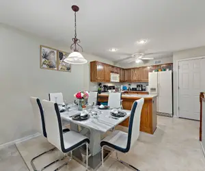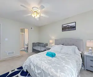 We provide contactless self-check-in and are reachable by phone or text message around the clock. Our on-site cleaning crew is a skilled team that follows CDC and OSHA regulations. We also work hard to keep our clients and their possessions safe. Since we wanted to have the best security systems on our property and to ensure our home is monitored, we decided to partner with ADT Security Services.The SpaceOur three-bedroom townhouse has one baby crib in the master suite, two queen beds, and two twin beds in the kids' room. In addition, there are TVs in the two main bedrooms and a vanity in the master suite.Additionally, we have two distinct living room areas, each furnished with a lovely sofa. For enjoyment, both come with TVs.Exercise weights, a treadmill, a 75-inch TV, and a desk with two external monitors that you may attach to your laptop are all located downstairs.Weequippedourkitchenwithalovelysetofcookware,anelectricteapot,acoffeemaker,anicemaker,apressurecooker,and anairfryer. Youshouldbeabletoprepareabasicsupperforyourfamilyandyourselfwiththehelpofallthesedevices.