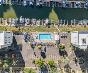 The building is located right next to the beautiful community pool. Views are of the surrounding network of canals, boat docks, and all the lush tropical foliage, as well as the Gulf of Mexico.