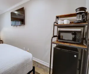 While the property does not include a kitchen, it is equipped with convenient amenities like a microwave, coffee maker, and mini fridge to make your stay comfortable and hassle-free.