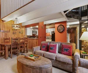 This one-bedroom plus loft, two-bathroom condo is located in Center Village at Copper Mountain, about 150 yards from the nearest lift. Shops, dining, and village events are all nearby.