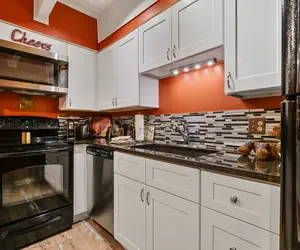 Guests have shared laundry in the building. One covered parking spot is included with the unit.