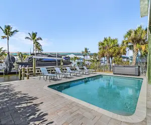 For extra flexibility, there are two sleeper sofas in the separate ground level, providing additional sleeping space for larger groups or families, this is where the third full bathroom with shower is located. Step outside to enjoy your private, heated outdoor pool, perfect for a refreshing swim or lounging poolside while taking in the serene canal views.