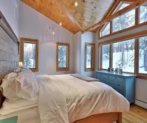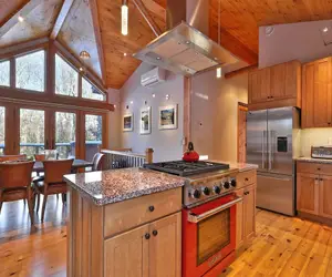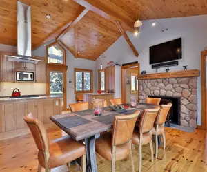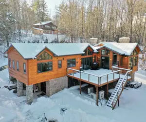 Welcome to Waffelhaus, one of Killington's most spectacular retreats. This stunning 4-bedroom, 4-bathroom luxury home spans an impressive 3,300 sq. ft., seamlessly blending rustic charm with modern sophistication. Perfect for families or groups, Waffelhaus can sleep up to 8 guests in comfort. Enjoy two spacious primary suites, a cozy bunkbed room, and thoughtfully designed bathrooms with luxury fixtures. Gather around one of two stone fireplaces, prepare meals in the gourmet kitchen with high-end appliances and Vetrazzo glass countertops, or relax in the open living spaces with wide pine floors and a walkout family room. Nestled in a peaceful, natural setting, this home offers the perfect balance of modern comfort and the great outdoors. Book your escape to Waffelhaus today and make unforgettable memories in the heart of Killington!
