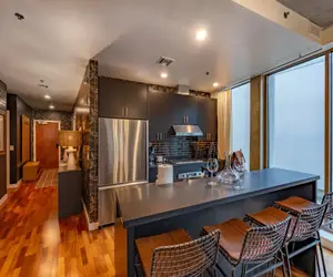 Welcome to River Run Retreat, a stylish loft nestled in the heart of downtown Hood River. Immerse yourself in the perfect mix of quaint small-town charm and vibrant urban energy. This beautifully renovated loft is designed for those who love to entertain, featuring an open-concept space with ample natural light cascading through large windows overlooking lively Oak Street.