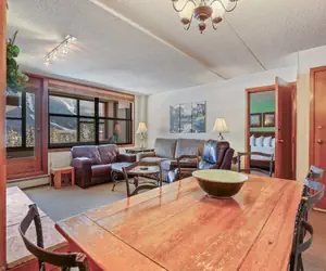 The bedroom features a lavish king bed, promising a restful and rejuvenating night's sleep after a day of skiing or exploring the resort. For additional sleeping space, the living room boasts a queen sleeper sofa, ensuring everyone has a cozy place to rest their heads.