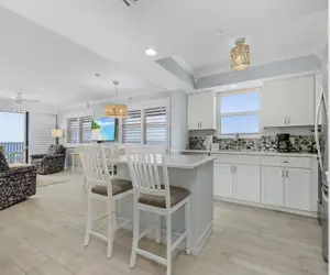 Welcome to Beach Villas 706, a stunning top-floor condo that offers breathtaking ocean views and the perfect beach getaway in the sought-after North End of Fort Myers Beach. This beautifully updated unit features a spacious layout with 940 square feet of living space, making it an ideal retreat for families or groups of up to six guests. The pool was resurfaced August 2025.