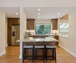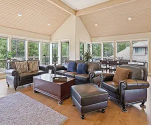 With ample space and a charming yard, this property is perfect for families and extended families. Kids can enjoy the neighborhood's roundabout, while adults relax in the secluded hot tub. Enjoy a well-stocked pantry and the prime location, just moments from Sunriver's best attractions. Two cameras are on the property for security: one over the garage facing the driveway and a non-functional one on the roof facing the back deck dining table.