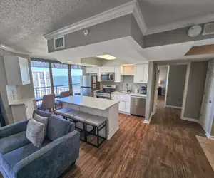Welcome to Brighton 1707, an exceptionally updated four‑bedroom, three‑bath ocean‑view condo that offers space, style, and comfort in one of Myrtle Beach’s most sought‑after oceanfront resorts. From the moment you step inside, sweeping views of the Atlantic Ocean and the resort pool complex through the bay window instantly set the tone for a memorable coastal escape.