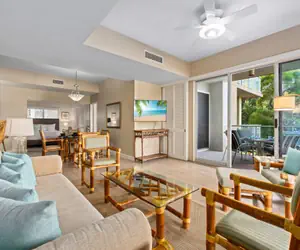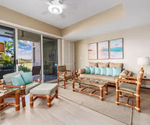 The master suite is a true sanctuary, featuring a luxurious California king-sized bed, a private en-suite bathroom, and direct access to the lanai, where you can enjoy the warm Hawaiian breeze. The second bedroom offers a California King Bed too. Both bathrooms are beautifully appointed as well with lots of space.