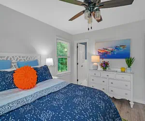 Welcome to your relaxing retreat in a quiet and safe residential neighborhood, perfect for families, couples, and solo travelers alike. Thoughtfully designed with comfort and convenience in mind, this inviting home features a spacious backyard, and cozy indoor spaces. From board games and books to a fully stocked setup for babies and young children, you'll find everything you need for a stress-free and enjoyable stay.Whether you're unwinding on the deck, or sharing laughs over a game night, this home offers a warm and welcoming space to create lasting memories. With peaceful surroundings, family-friendly amenities, and everything you need to feel at home, we’re excited to make your stay both comfortable and memorable.★☆ NEARBY ATTRACTIONS, LANDMARK & RESTAURANTS☆★ Long Leaf Park – 7 min drive UNCW – 9 min drive Downtown Wilmington – 10 min drive Novant Health New Hanover Regional Medical Center – 7 min drive Airlie Gardens – 13 min drive New Hanover County Arboretum – 11 min drive Jungle Rapids – 8 min drive Independence Mall – 5 min drive Mayfaire Town Center – 19 min drive Wrightsville Beach – 17 min drive Carolina Beach – 22 min drive Kure Beach Pier – 27 min drive Fort Fisher – 30 min drive★☆ KEY FEATURES ☆★ Prime location Located in a quiet and safe residential neighborhood Spacious backyard with deck/porch and outdoor furniture for lounging and dining Family-friendly amenities including a baby bath, crib, high chair, and Pack 'n Play Children's books, toys, and board games for entertainment A cozy collection of books, magazines, and reading material for all ages★☆ BEDROOM ARRANGEMENT☆★ BR1: 1 King Bed BR2: 1 Queen Bed BR3: 1 Queen Bed BR4: 2 Twin Beds★☆ LIVING ROOM ☆★Step into a bright and welcoming living room featuring comfortable seating and a smart TV—perfect for relaxing after a day of exploring.★☆ KITCHEN & DINING ☆★Enter our modern, fully equipped kitchen, crafted for both ease and enjoyment. Outfitted with high-end appliances and generous counter space, it’s ideal for everything from casual bites to full meals. Whether sharing breakfast in the dining area or prepping dinner together, this space blends style and function for memorable moments.★☆ PARKING ☆★ The extended driveway can fit 4–6 vehicles parked two wide.★☆ HOUSE RULES ☆★ Pets are not allowed The fireplace inside the house is decorative only and not available for use. No Smoking No events, parties, or large gatherings Please report any damages that occur during stay Guests may request an early check-in (up to 3 hours before 4pm) or a late check-out (up to 2 hours after 10am), so long as there is not a reservation booked at our property for the day of your request. Please message us a day in advance to confirm availability and receive the applicable fee quote. Extra Guests: If more guests than permitted are found at the property, we reserve the right to deny entry based on policies. Extra guests will be treated as trespassers. An additional fee of $50/night per extra guest may apply, or we might request that you vacate the property. If uncertain about guest numbers or daytime visitors, please reach out. We aim to prevent any misunderstandings. The hot tub is currently out of service and not available for guest use. Please note that it is not included as part of the amenities.
