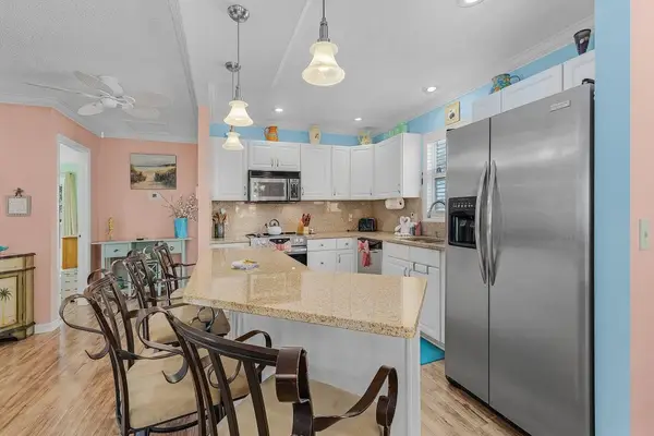 Step outside to discover your own private oasis, complete with a screened-in pool and loungers perfect for soaking up the Florida sunshine. The outdoor seating area is ideal for al fresco dining or enjoying a barbecue on the grill. For guests who love adventure, the garage is stocked with beach gear and kayaks, ensuring you have everything you need for a fun-filled day on the water.