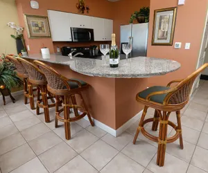 The fully equipped kitchen features granite countertops, upgraded appliances, lots of storage space, and everything necessary for family meals, snacks, and perhaps even cooking up some fresh local seafood. If you need to do some laundry while you are here, there is a full-size washer/dryer for your convenience, and there is upgraded WIFI available throughout the unit. The private balcony is the best seat in the house to kick back and watch the dolphins play or relax with a cocktail and soak in the unparalleled views of the Gulf of Mexico! This unit also comes with a private parking space on the same floor in the enclosed garage - during busy times of the year, this is a HUGE PLUS!