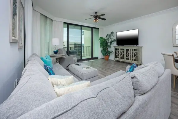 This beautifully decorated condo features carpeted bedrooms and hardwood flooring throughout the rest of the space. The large balcony offers plenty of plush patio furniture and overlooks the lazy river and the bay, providing the perfect setting for relaxation. With its high-end finishes and welcoming atmosphere, this condo truly feels like home.