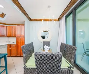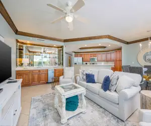 Phoenix on the Bay Unit 1527 is a beautifully decorated two-bedroom, two-bath condo that sleeps up to six guests. The master bedroom features a king bed and an en-suite bathroom with a double vanity, walk-in tiled shower, and Jacuzzi tub. The second bedroom also offers a king bed and a private bathroom with a single vanity and tub-shower combination. The living room includes a queen-size sofa sleeper for additional guests.