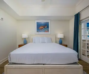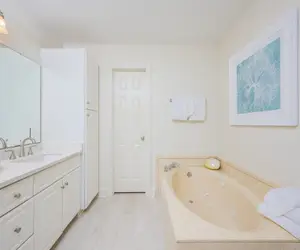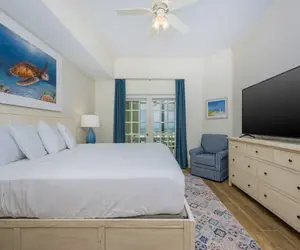 The master bedroom features a comfortable king-size bed and an en suite bathroom with a soaking tub, a walk-in shower, a double vanity, and a private water closet. The second bedroom is perfect for larger groups with a queen bed and queen-size bunk beds, while the third bedroom offers a queen bed paired with twin-size bunk beds, making it ideal for kids or extra guests.
