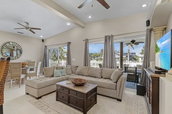 Step outside to discover the oversized patio that beckons you to relax and unwind. The heated private pool is perfect for a refreshing dip, while the spacious backyard provides ample room for outdoor activities. Guests can also enjoy dock access for their boating adventures. The canal view offers direct channel access, perfect if you choose to rent a boat during your stay. Please note, guests may only tie off from the dock.